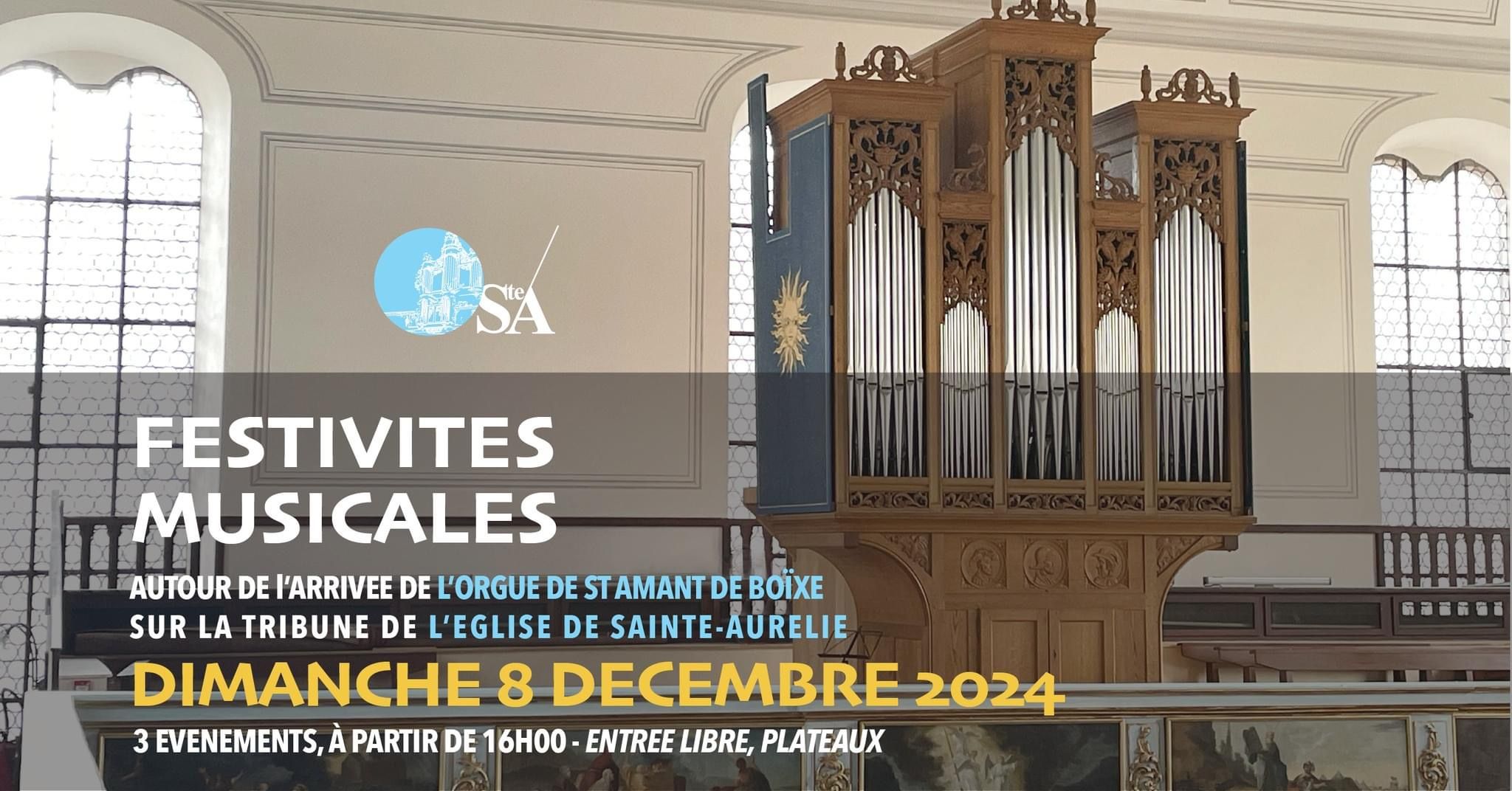 Musical festivities surrounding the arrival of the organ from St-Amant-de-Boixe on the organ loft of the church of Sainte-Aurélie